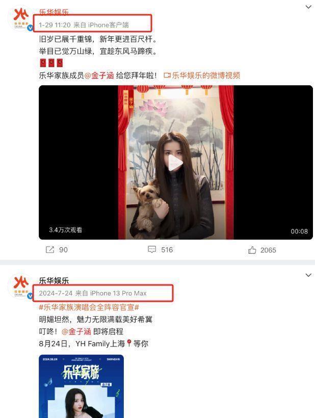 这个时候,粉丝也发现乐华娱乐两年只发过两条关于金子涵的内容。